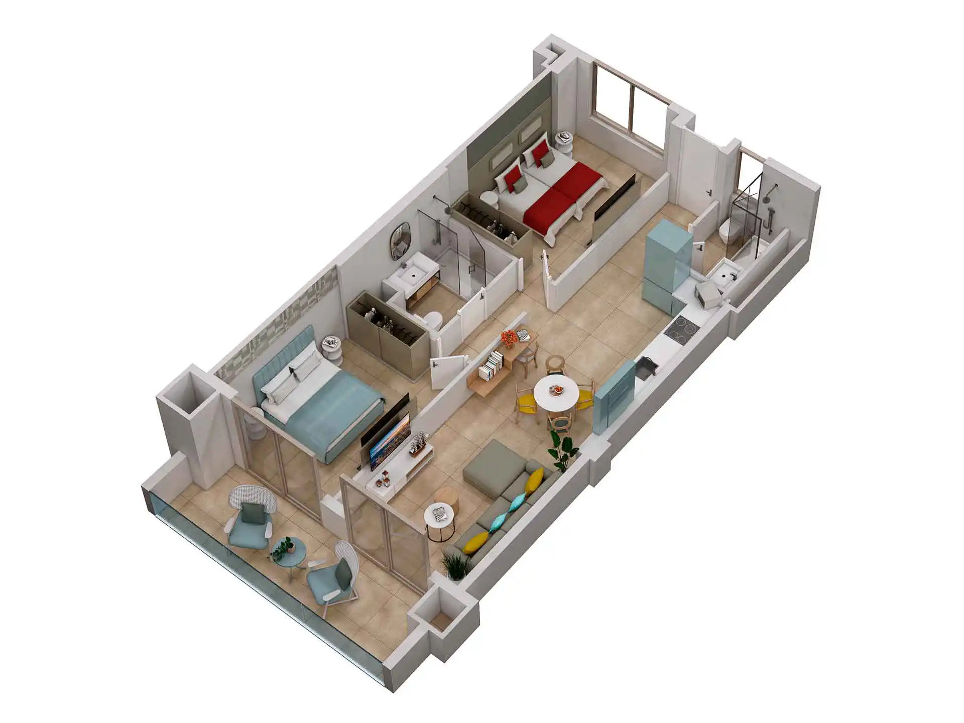 Wnętrza apartamentów zostały zaprojektowane z myślą o komforcie, przestrzeni i funkcjonalności. Co więcej, nowoczesny, minimalistyczny design idzie tu w parze z domową wygodą. Każdy apartament dysponuje w pełni wyposażonym aneksem kuchennym. Jednak to prywatne tarasy stanowią o wyjątkowości tego miejsca. Dzięki temu są idealną przestrzenią na poranne espresso przed wyruszeniem na trasę lub wieczorną analizę postępów.